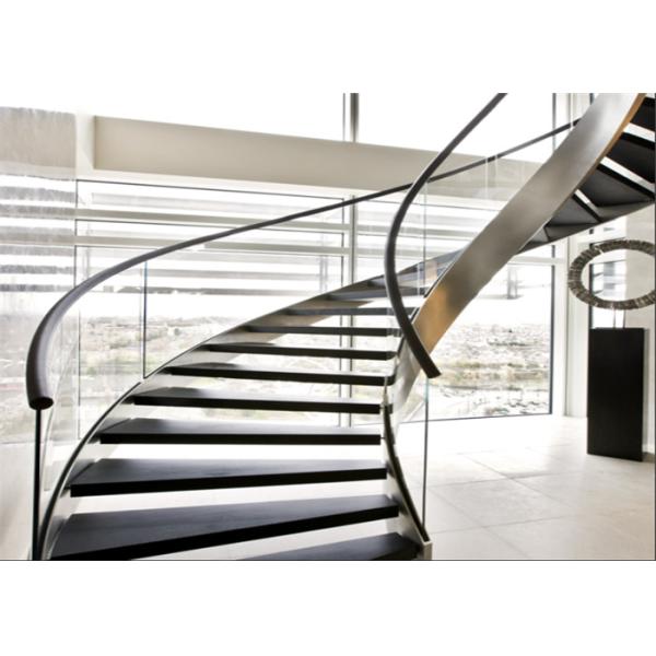 A variety of materials are used in curved staircase design, the vast majority of woods combine well with stainless steel, while concrete is also a popular choice for curved stair design. Curved stairs regularly feature handrails on both sides, which are usually formed from stainless steel or timber. Glass balustrades are another popular feature used to complement a curved staircase, allowing light to travel throughout a space.